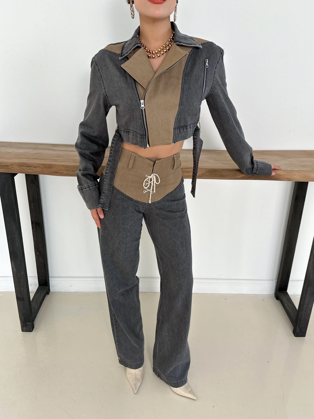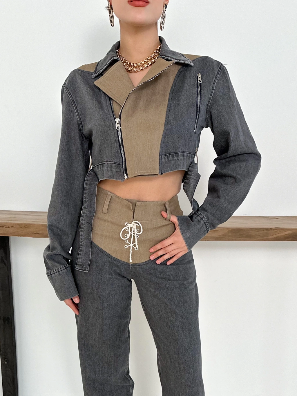 Oversize Kemer Detay Deri Ceket